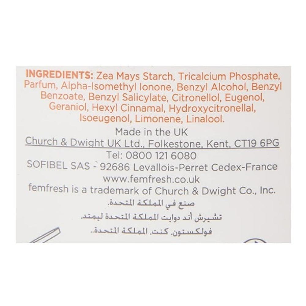 بودرة فيم فريش هي بودرة لطيفة معطرة بشكل مميز تم تركيبها خصيصاً للتمتع بانتعاش كامل. بودرة فيم فريش هي بودرة خالية من التلك، تم اختبارها من قبل أطباء الجلدية وأطباء الأمراض النسائية وهي مناسبة للعناية بالمناطق الحساسة. استخدميها كل يوم كجزء من روتين النضارة الشخصي لتساعدك على الشعور بالجفاف والانتعاش والراحة.