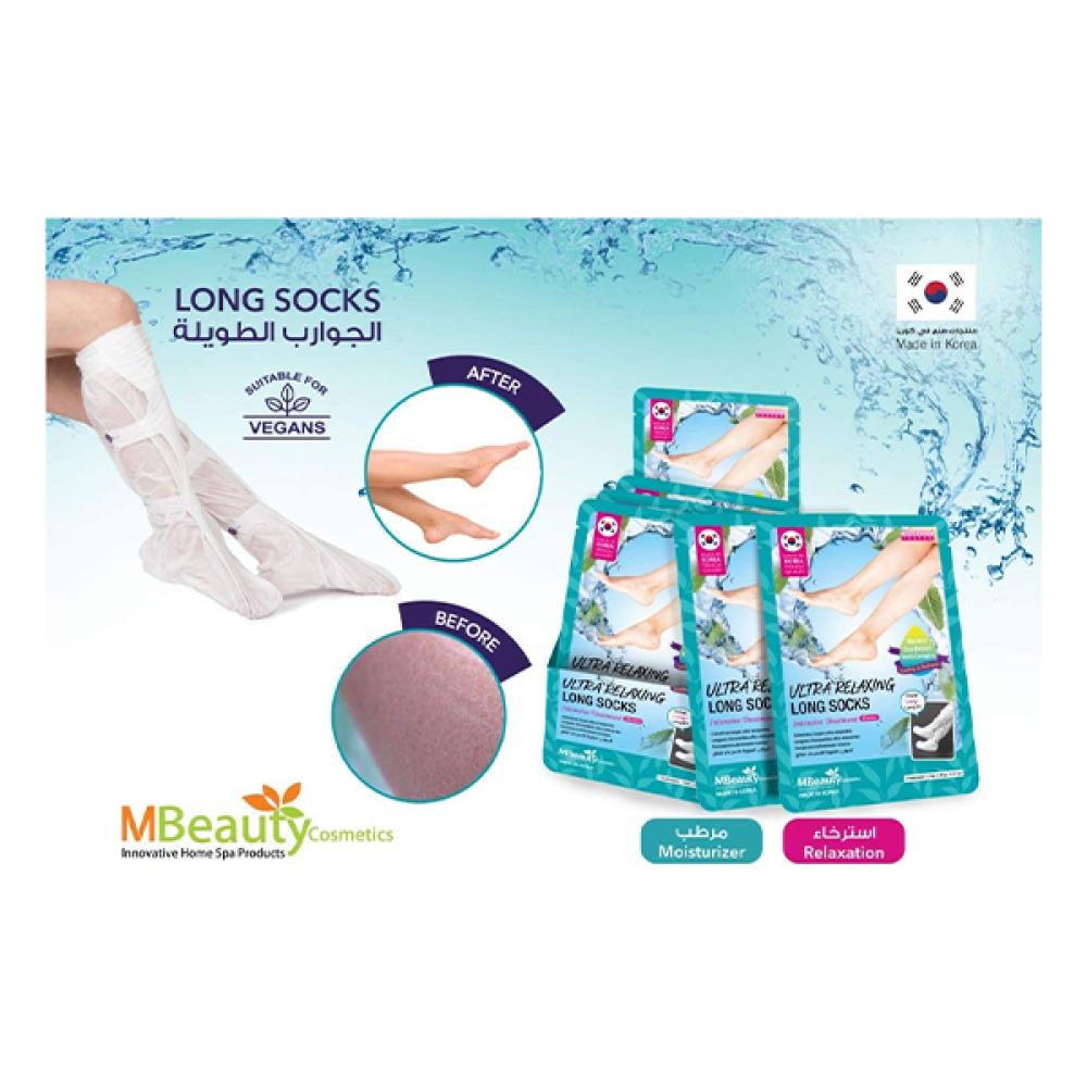 جوارب طويلة للعناية بالقدمين مصنعة من نسيج مريح للغاية من ماركة إم بيوتي الكورية.