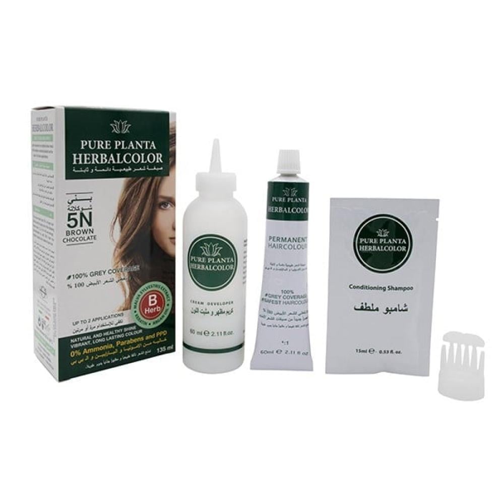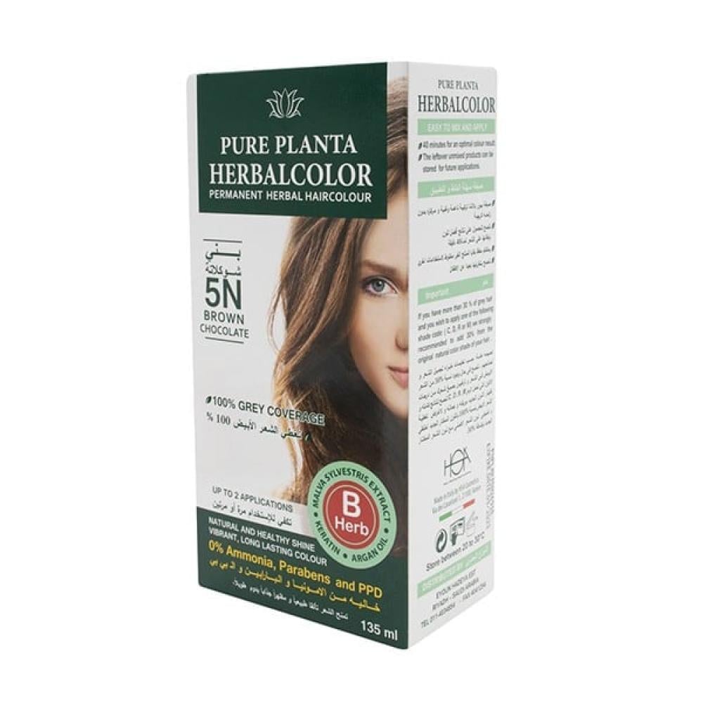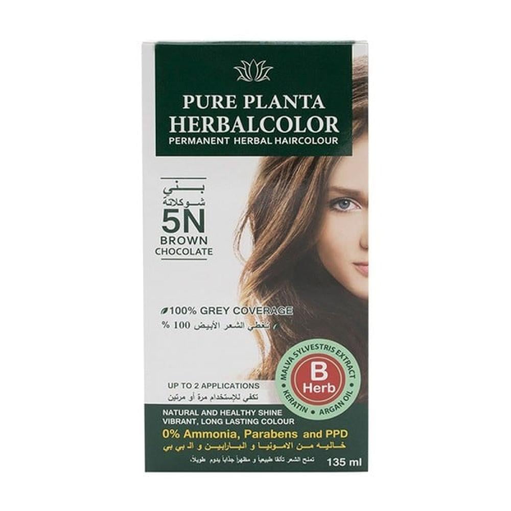 صبغة شعر بالاعشاب خاليه بني شوكلاته من الامونيا من بيور بلانتا , N5.