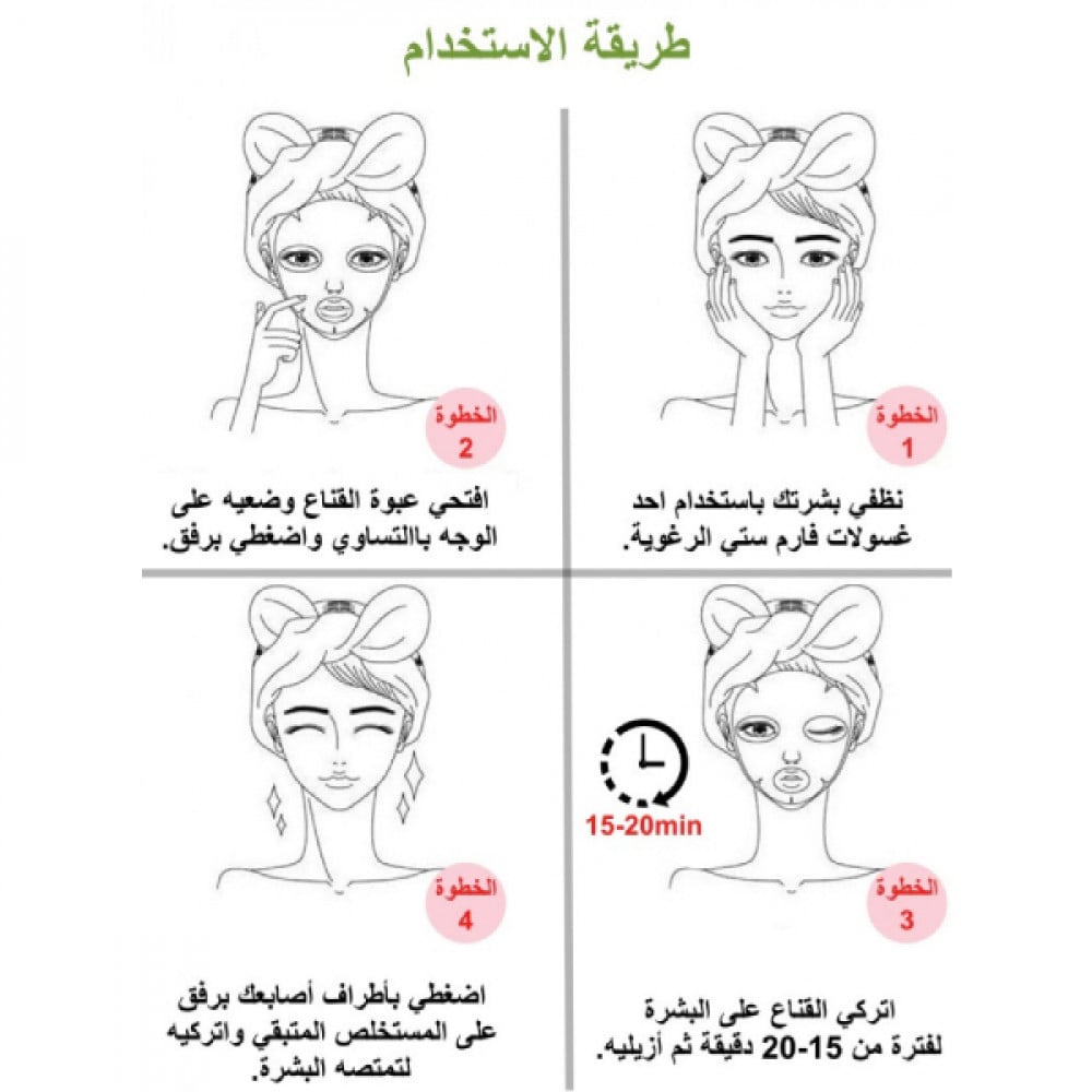 -افتحي العبوة وضعي القناع على وجهك، ماعدا حول عينيك والفم.