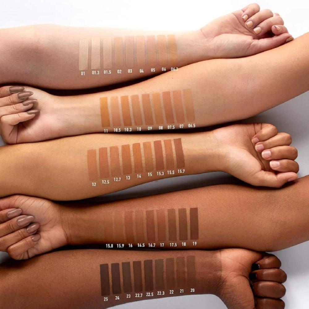 - تغطية كاملة: يخفي البقع الداكنة، وعلامات التمدد، والاحمرار، وعيوب البشرة بشكل كامل.