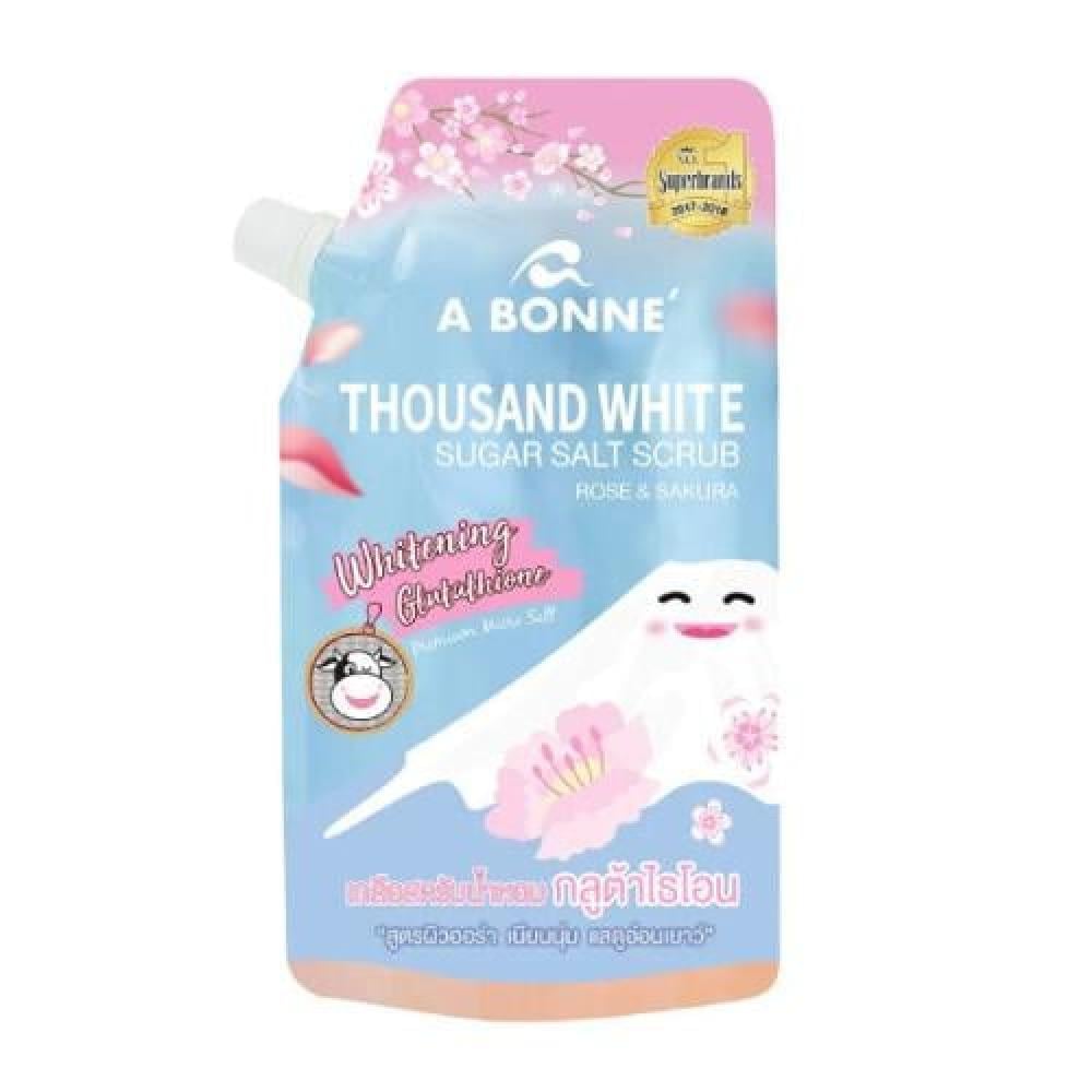 مقشر الملح بالسكر الأبيض بخلاصة الورد والساكورا من ابون - 350جرام
