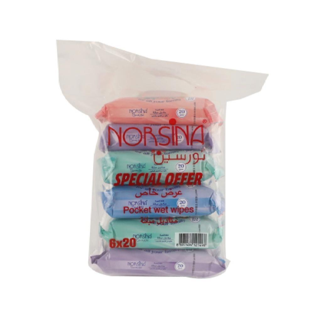 مناديل مبللة 6 حبه منوع من نورسينا.
