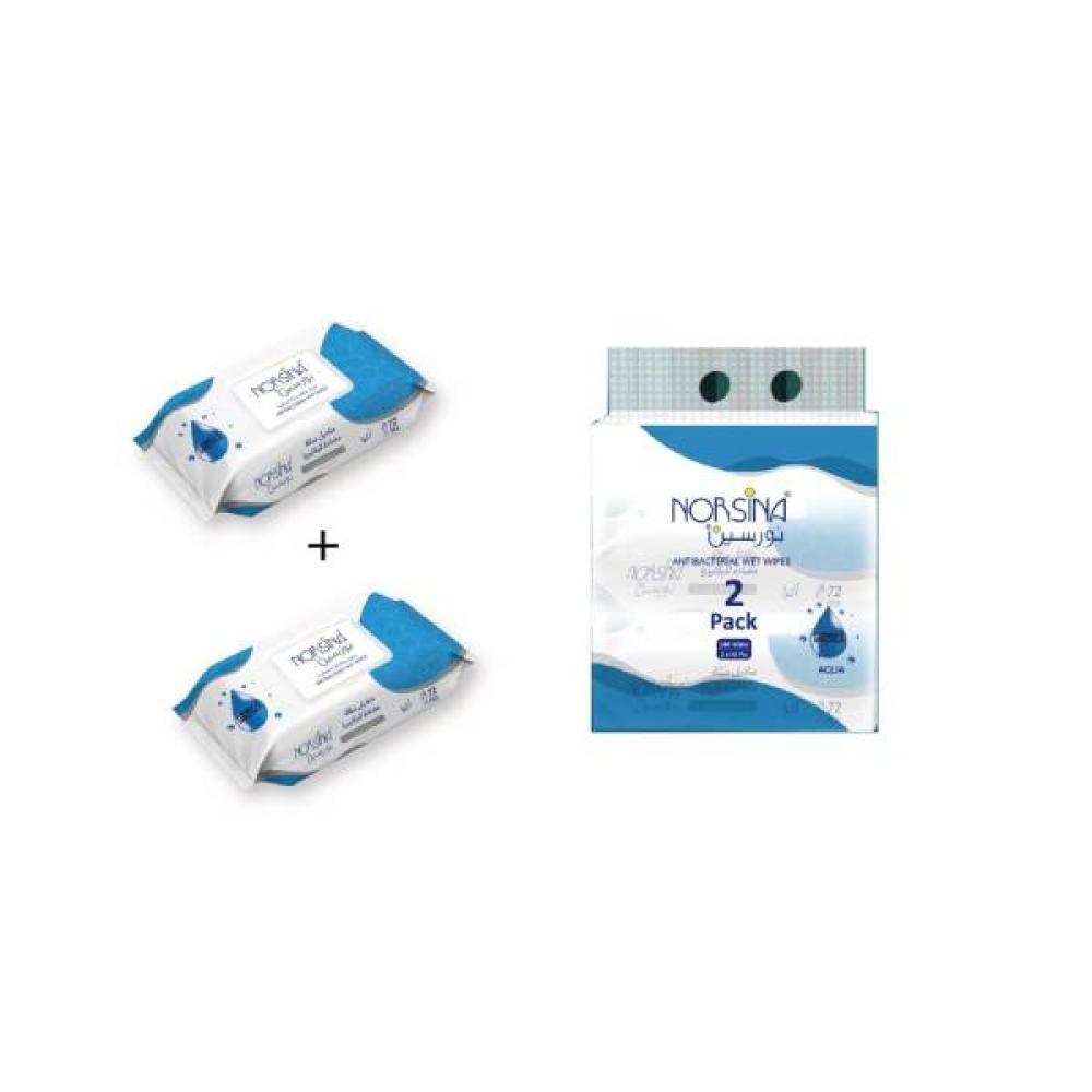 مناديل مبلله مضاد للبكتيريا اكوا *(عبوتين) من نورسينا - 72منديل