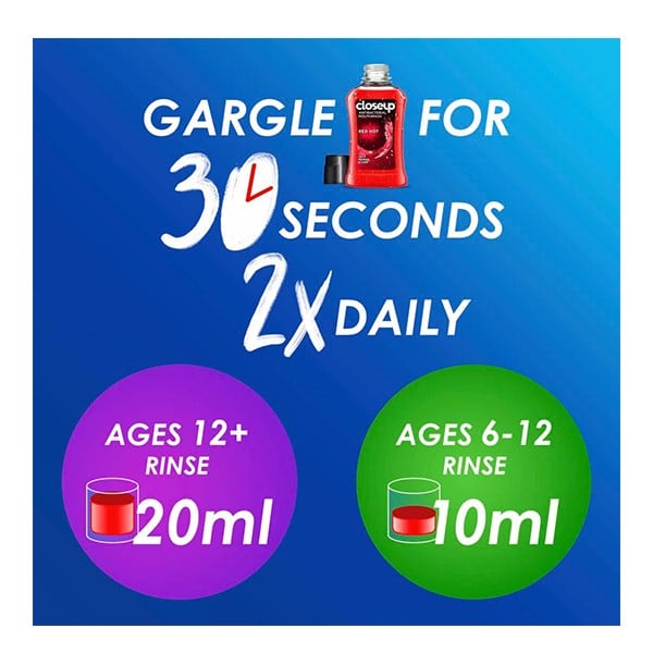 - يحتوي على ضعفي كمية الفلورايد الموجودة في غسول الأسنان لحماية إضافية من التسوّس وتلف الأسنان.
