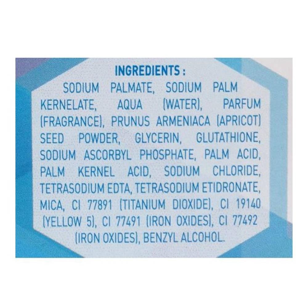 نواة نخيل الصوديوم, أكوا (ماء), عطر (عطور), غليسرين, مسحوق بذر أرمينياكا (مشمش), جلوتاثيون, أكواديوميد الفوسفات, حمض الفوسفات, ALPHA-ISOMETHYL IONONE, هيدروكسي سيترونيلال, سيترونيلول.
