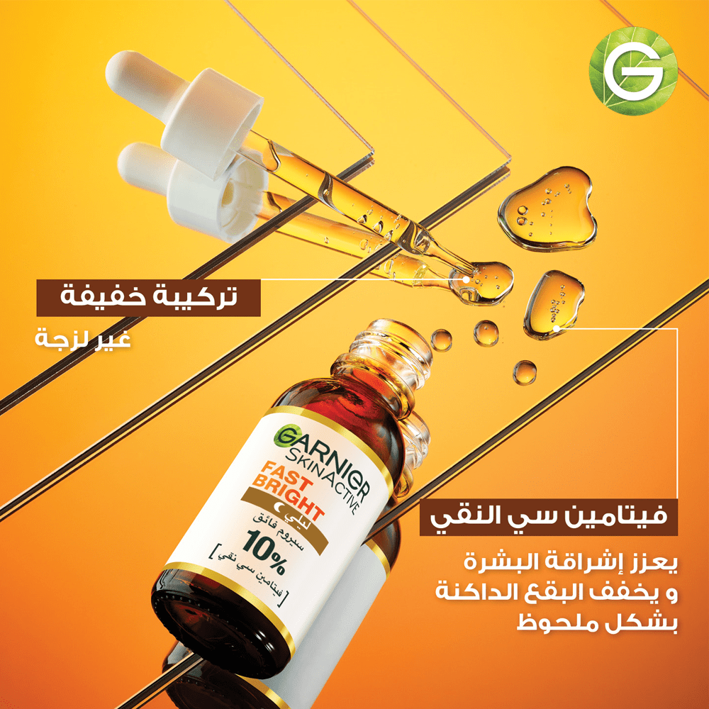 • يساعد سيروم فيتامين سي من غارنييه في تفتيح البشرة وتقليل البقع الداكنة