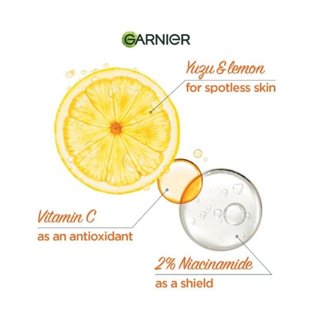 سيروم للوجه خفيف الوزن وسريع الامتصاص بفيتامين سي من غارنييه بحجم 15 مل. غني بفيتامين سي المعروف بخصائصه المضادة للأكسدة والمُضيئة للبشرة.