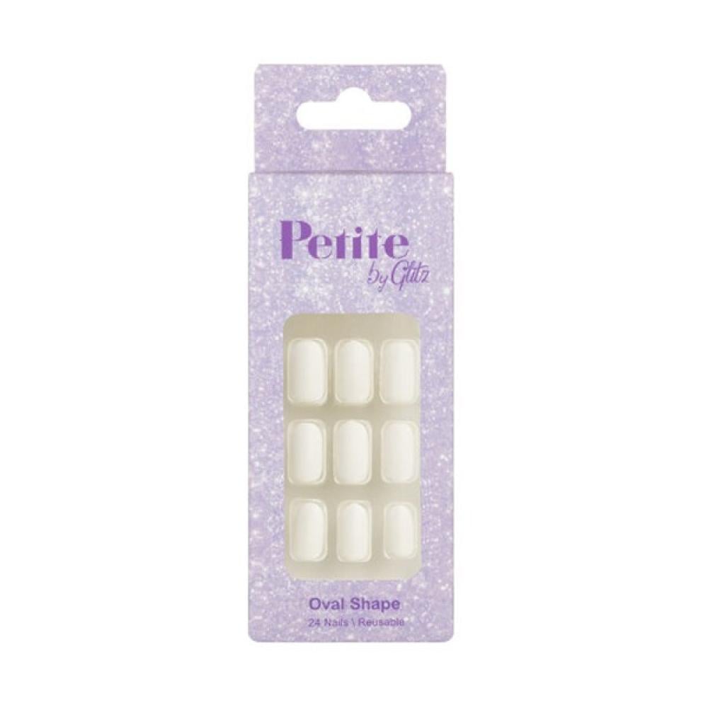 اظافر صناعيه بتيت شكل اوفال ابيض من جليتز.