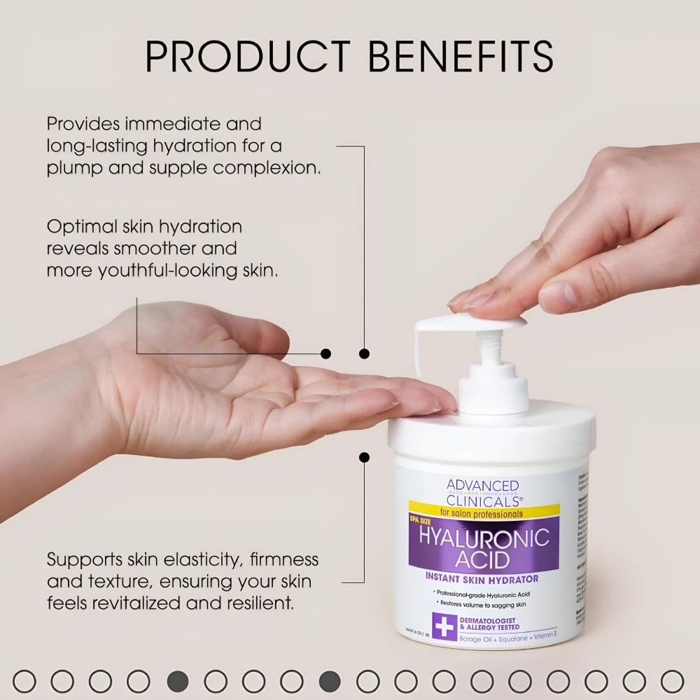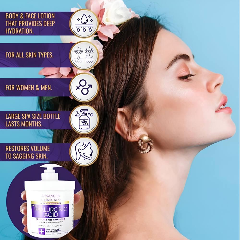 كريم حمض الهيالورونيك مرطب فوري للبشرة من ادفانسد كلينكالز - 454جرام