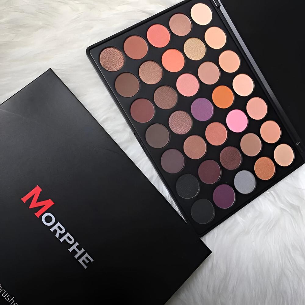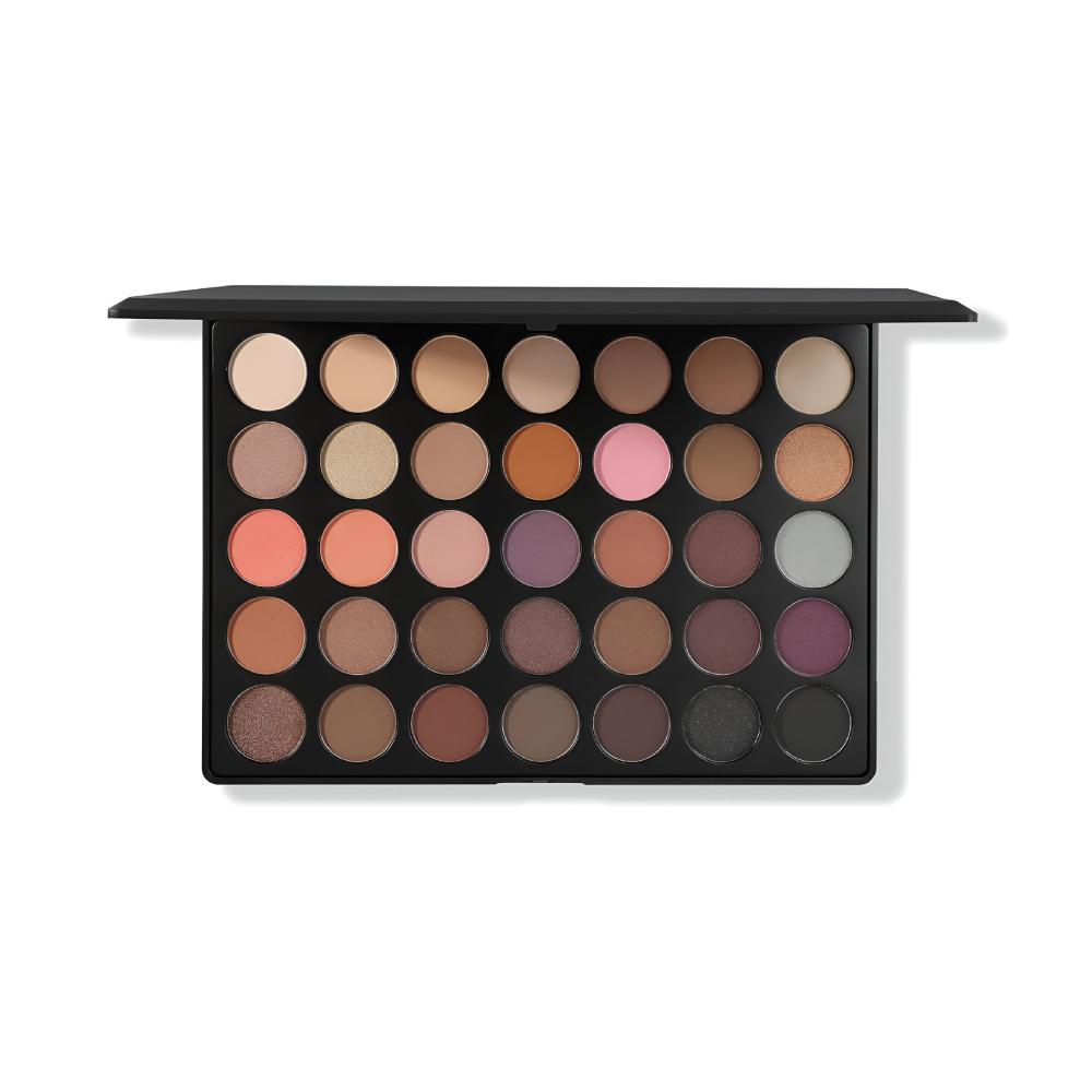 باليت ظلال العيون وارم إت أب من مورفي – 35 درجة دافئة، تجمع بين البيج، البني، الترابي، الموف، الرمادي، والظلال الداكنة. مثالي لأي إطلالة يومية أو سهرة، ويمنحكِ خيارات واسعة من finiش مطفي ولامع لتحديد العين، الدمج، أو التوهج.
