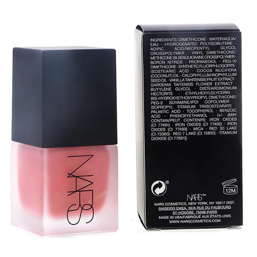 • أحمر خدود سائل من نارس يتميز بتركيبة خفيفة وسهلة الدمج، تمنحك توهجاً طبيعياً وتبرز جمال وجهك.