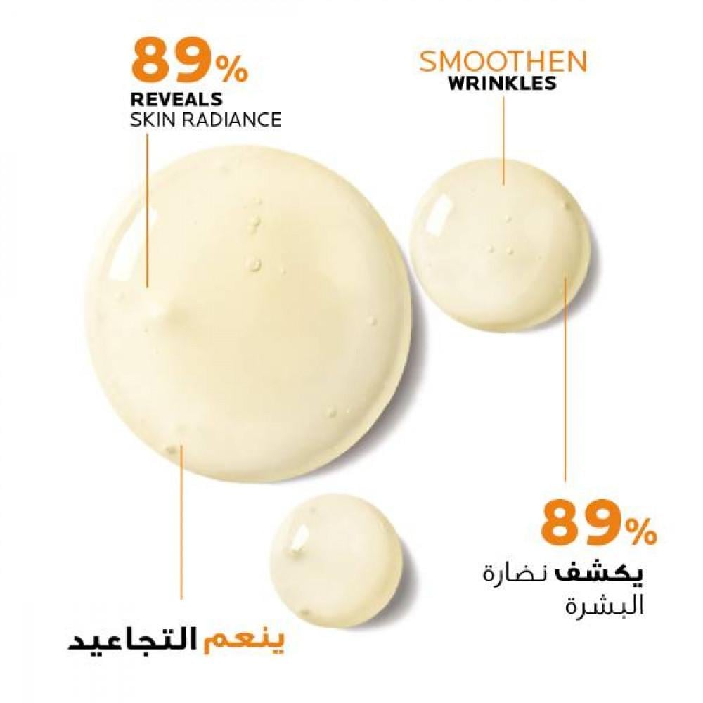 - تفتيح البشرة: يحتوي السيروم علىفيتامين سي النقي الذي يساعد في توحيد لون البشرة وتقليل ظهور البقع الداكنة والتصبغات، مما يمنح البشرة إشراقة صحية ومظهرًا أكثر حيوية.