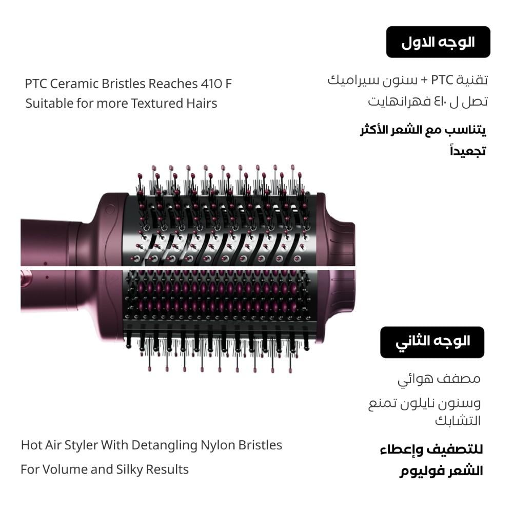 - يجمع بين وظيفتي المجفف ومصفف الشعر في جهاز واحد لتوفير الوقت والجهد.