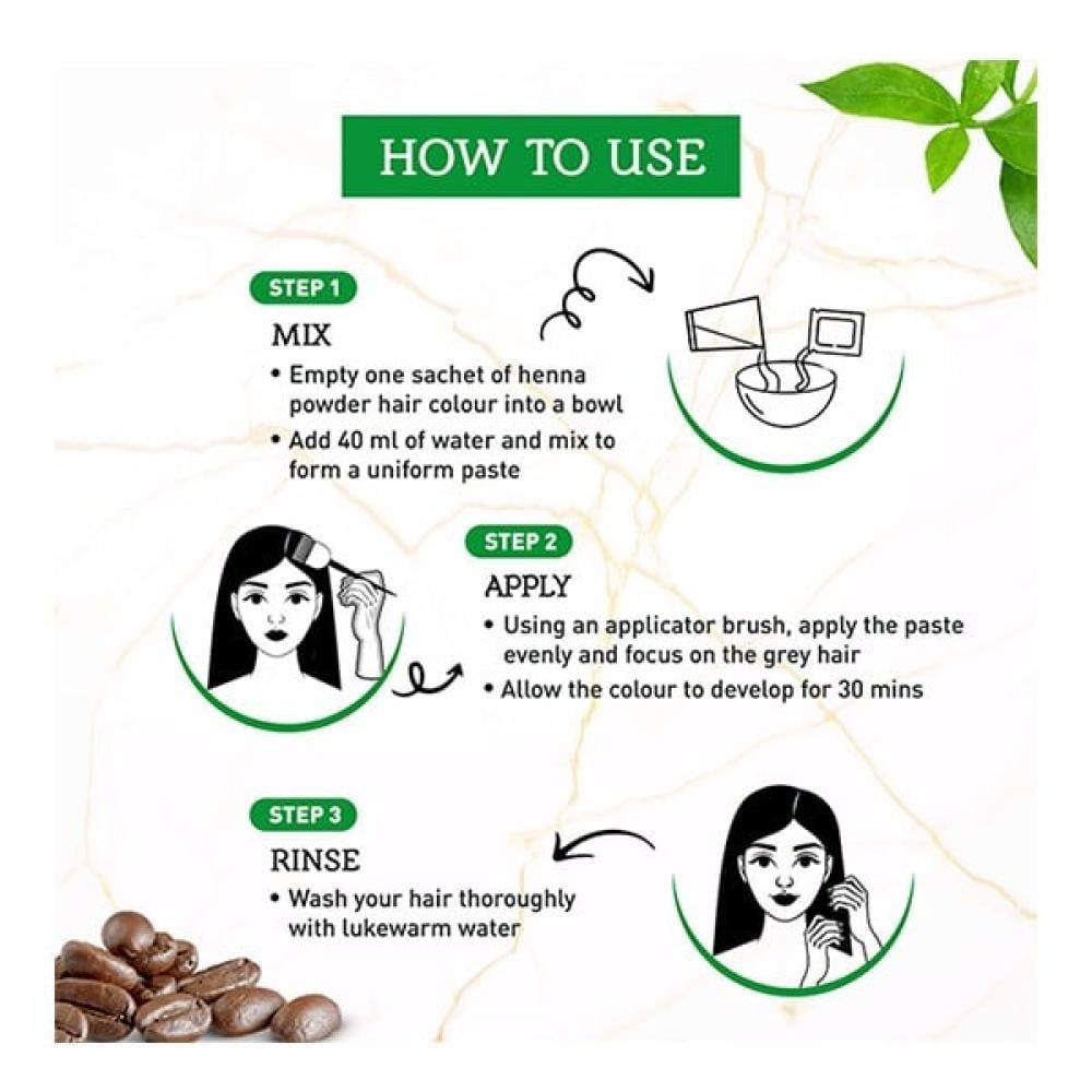 - مزيج من المكونات طبيعية التي تُضاف إلى الحناء تغذي شعرك وتجعله ناعماً وحريرياً ولامعاً.